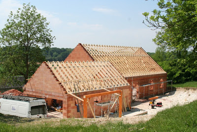 La couverture avance bien, les menuiseries extérieures ont été livrées et posées comme prévu samedi. Certains points sont à revoir, les fenetres du garage et la porte de l'atelier ayant été commandées pour un local isolé. Après concertation ces points devraient être rapidement rectifiés.