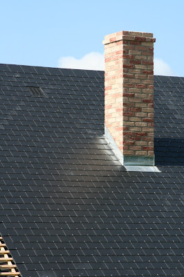 La chemine est terminée ! Pas mal ! Demain pose du faitage ....