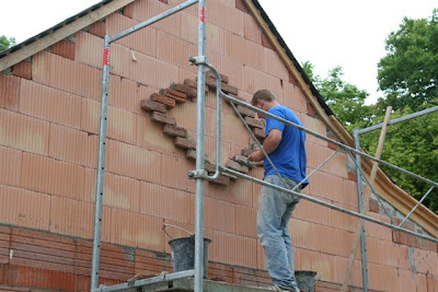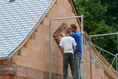 Les cloisons en carreaux de platre montent à toute vitesse ! Le plan de la maison devient réalité.