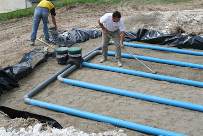 L'équipe des paysagistes a commencé la construction en espalier qui va permettre d'aménager le dénivelé.